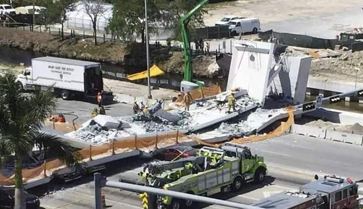 ਅਮਰੀਕਾ 'ਚ ਪੁਲ ਡਿੱਗਣ ਨਾਲ ਚਾਰ ਮੌਤਾਂ, ਕਈ ਫੱਟੜ ਅਮਰੀਕਾ ਦੇ ਮਿਆਮੀ ਵਿੱਚ ਫ਼ਲੋਰੀਡਾ ਯੂਨੀਵਰਸਿਟੀ ਕੈਂਪਸ ਤੇ ਸਵੀਟਵਾਟਰ ਨੂੰ ਜੋੜਨ ਵਾਲਾ ਪੈਦਲ ਯਾਤਰੀਆਂ ਲਈ ਬਣਾਇਆ ਪੁਲ ਢਹਿ ਗਿਆ। ਇਸ ਦੁਰਘਟਨਾ ਵਿੱਚ ਚਾਰ ਲੋਕਾਂ ਦੀ ਮੌਤ ਹੋ ਗਈ ਤੇ ਨੌਂ ਜ਼ਖ਼ਮੀ ਹੋ ਗਏ। ਪੁਲ ਹੇਠਾਂ ਘੱਟੋ-ਘੱਟ ਪੰਜ ਤੋਂ ਛੇ ਗੱਡੀਆਂ ਵੀ ਦੱਬ ਗਈਆਂ। ਘਟਨਾ ਦੀ ਜਾਣਕਾਰੀ ਮਿਲਣ ਤੋਂ ਬਾਅਦ ਬਚਾਅ ਕਰਮੀਆਂ ਤੇ ਫ਼ਲੋਰੀਡਾ ਪੁਲਿਸ ਨੇ ਮੋਰਚਾ ਸਾਂਭਿਆ। ਪੁਲ ਦੇ ਮਲਬੇ ਹੇਠ ਦੱਬੀਆਂ ਕਾਰਾਂ ਤੇ ਲੋਕਾਂ ਨੂੰ ਬਾਹਰ ਕੱਢਿਆ ਗਿਆ। ਫ਼ਲੋਰੀਡਾ ਯੂਨੀਵਰਸਿਟੀ ਮੁਤਾਬਕ, ਇਸ ਫੁਟਬ੍ਰਿਜ ਨੂੰ 2019 ਤੋਂ ਪਹਿਲਾਂ ਚਾਲੂ ਨਹੀਂ ਕੀਤਾ ਜਾਣਾ ਸੀ। ਇਸ ਪੁਲ ਨੂੰ ਸਿਰਫ ਛੇ ਘੰਟਿਆਂ ਵਿੱਚ ਹੀ ਅੱਠ ਲੇਨ ਸੜਕ ਉੱਤੇ ਬਣਾ ਦਿੱਤਾ ਗਿਆ ਸੀ। ਇਹ 174 ਫੁੱਟ ਯਾਨੀ 53 ਮੀਟਰ ਲੰਮਾ ਸੀ। ਇਹ ਘਟਨਾ ਉਦੋਂ ਵਾਪਰੀ ਜਦੋਂ ਲਾਲ ਬੱਤੀ 'ਤੇ ਗੱਡੀਆਂ ਖੜ੍ਹੀਆਂ ਸਨ। ਦੁਰਘਟਨਾ ਵਿੱਚ ਮਾਰੇ ਗਏ ਲੋਕਾਂ ਨੂੰ ਆਪਣੀਆਂ-ਆਪਣੀਆਂ ਕਾਰਾਂ ਨੂੰ ਅੱਗੇ ਜਾਂ ਪਿੱਛੇ ਲਿਜਾਣ ਦਾ ਮੌਕਾ ਵੀ ਨਹੀਂ ਮਿਲਿਆ। ਇਸ ਘਟਨਾ 'ਤੇ ਸੋਗ ਜਤਾਉਂਦਿਆਂ ਅਮਰੀਕੀ ਰਾਸ਼ਟਰਪਤੀ ਟਰੰਪ ਨੇ ਟਵੀਟ ਕਰਦਿਆਂ ਕਿਹਾ ਕਿ ਘਟਨਾ ਪੂਰੀ ਤਰ੍ਹਾਂ ਨਾਲ ਨਜ਼ਰ ਰੱਖੀ ਜਾ ਰਹੀ ਹੈ। ਉਨ੍ਹਾਂ ਅੱਗੇ ਕਿਹਾ ਕਿ ਕਈ ਬਹਾਦੁਰ ਲੋਕਾਂ ਮਿਲ ਕੇ ਕਈ ਲੋਕਾਂ ਦੀਆਂ ਜਾਨਾਂ ਬਚਾਈਆਂ। ਉਹ ਅੱਗੇ ਕਹਿੰਦੇ ਹਨ ਕਿ ਮੈਂ ਉਨ੍ਹਾਂ ਦਾ ਸ਼ੁਕਰੀਆ ਅਦਾ ਕਰਦਾ ਹਾਂ, ਅਸੀਂ ਮਿਲ ਕੇ ਉਨ੍ਹਾਂ ਲੋਕਾਂ ਲਈ ਪ੍ਰਾਰਥਨਾ ਕਰੀਏ ਜੋ ਇਸ ਘਟਨਾ ਵਿੱਚ ਜ਼ਖ਼ਮੀ ਹੋਏ ਹਨ। ਫੁਟਬ੍ਰਿਜ ਦੀ ਲੰਬਾਈ 174 ਫੁੱਟ (53 ਮੀਟਰ) ਤੇ ਵਜ਼ਨ 950 ਟਨ ਸੀ। ਪੁਲ ਫ਼ਲੋਰੀਡਾ ਦੀਆਂ ਦੋ ਕੰਪਨੀਆਂ ਨੇ ਮਿਲ ਕੇ ਬਣਾਇਆ ਸੀ। ਇਸ ਨੂੰ ਬਣਾਉਣ 'ਤੇ 14 ਮਿਲੀਅਨ ਡਾਲਰ ਦੀ ਲਾਗਤ ਆਈ ਸੀ। ਇਨ੍ਹਾਂ ਕੰਪਨੀਆਂ 'ਤੇ ਪਿਛਲੇ ਸਾਲ ਵੀ ਘਟੀਆ ਪੁਲ ਬਣਾਉਣ ਦੇ ਇਲਜ਼ਾਮ ਲੱਗੇ ਸਨ।