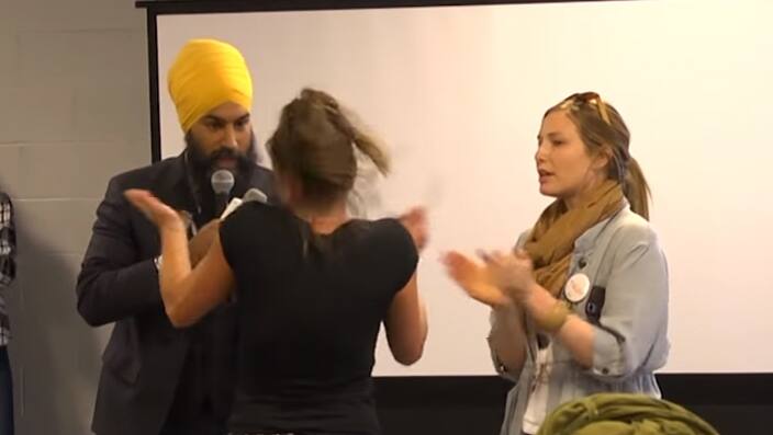 ਜਗਮੀਤ ਸਿੰਘ ਨੇ ਸਪਸ਼ਟ ਰੂਪ ਵਿੱਚ ਉਸ ਨੂੰ ਜਵਾਬ ਦੇਣ ਦੀ ਜਗ੍ਹਾ ਸਮਰਥਕਾਂ ਨੂੰ ਕਿਹਾ ਕਿ ਅਸੀਂ ਪਿਆਰ ਤੇ ਹਿੰਮਤ 'ਚ ਵਿਸ਼ਵਾਸ ਰੱਖਦੇ ਹਾਂ, ਅਸੀਂ ਨਫ਼ਰਤ ਕਰਕੇ ਕਿਸੇ ਡਰ ਵਿੱਚ ਨਹੀਂ ਰਹਿਣਾ ਤੇ ਅਸੀਂ ਇਸ ਸਕਾਰਾਤਮਕ ਪ੍ਰੋਗਰਾਮ ਨੂੰ ਨਫ਼ਰਤ ਕਰਕੇ ਖ਼ਰਾਬ ਨਹੀਂ ਕਰਨਾ ਚਾਹੁੰਦੇ। ਇਸ ਤੋਂ ਬਾਅਦ ਉਕਤ ਔਰਤ ਚੁੱਪ ਕਰਕੇ ਸਮਾਗਮ ਨੂੰ ਛੱਡ ਕੇ ਬਾਹਰ ਚਲੀ ਗਈ।